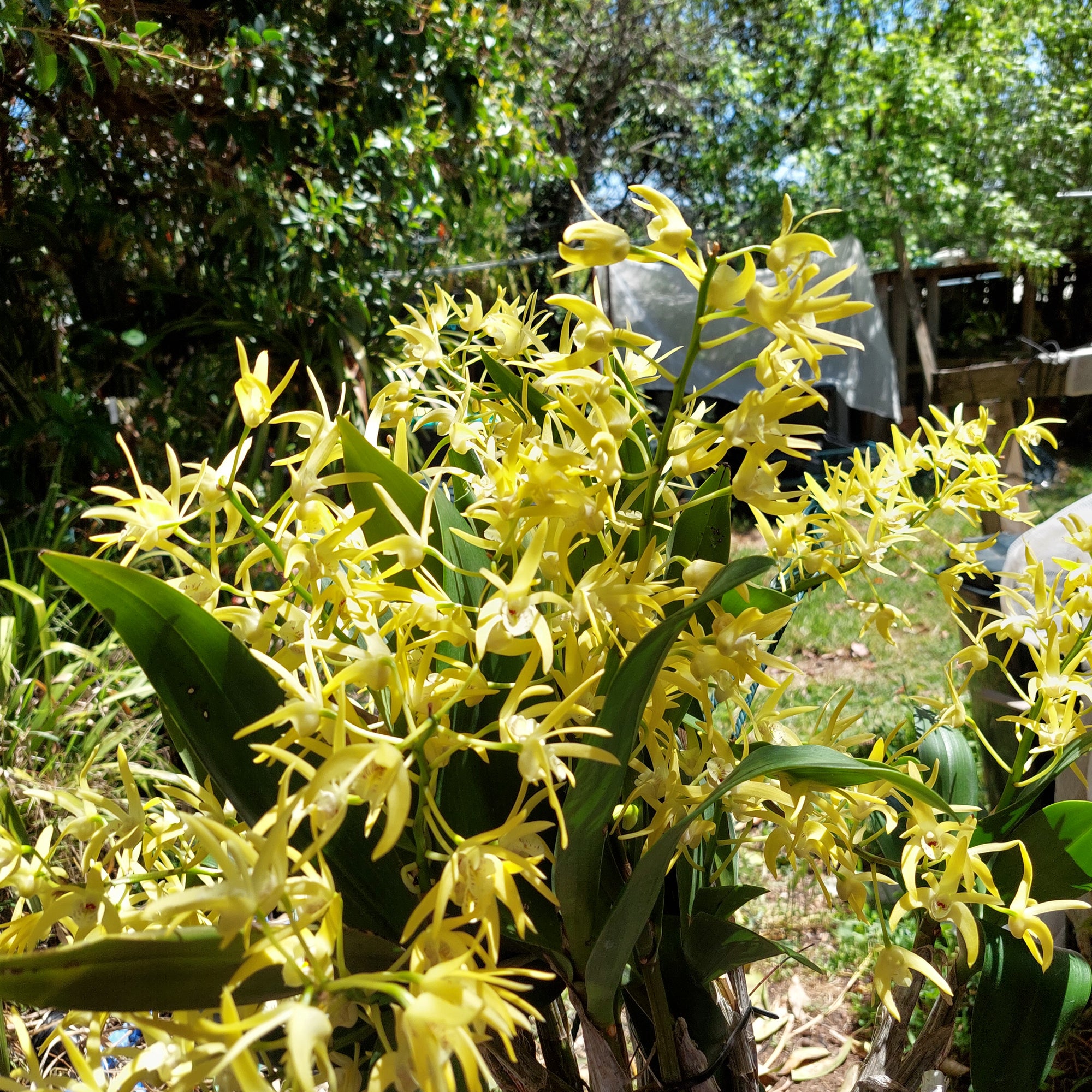 Well spring is now fully here the canola has lost its flowers and seeds are ripening. We had a great flowering season here and we had a few nice surprises, the 2nd pic is Dendrobium speciosum 'Georges River Special' first time its flower for me and yes it is as good as they say, a lovely big flower and highly fragrant. the 3rd pic is Dendrobium Aussie Jester a hybrid between Den,. Autumn and Den. Jesmond Sparkler, I got this baby from AON, a very nice good sized flower with nice straight spikes and the flowers opened fully, the last pic is my favourite, I grow a lot of Dendrobium speciosum Grandiflorums and for that matter speciosums in general, they grow extremely well but the grandis seldom flower, I don't grow them in hot houses just an open bush house, with a winter roof or under a tree canopy, I think our harsh winters definately dont help, but I keep trying. Well this year I had 3 flower, 2 of the Den. spec. Katrina Remakes as per the 4th pic and a Den. spec. Creek Aureum x Katrina, which is sensational, so never lose hope the wait is definately worth it.