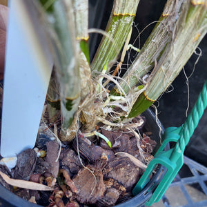 Premium top notch orchid division, Den. Australian Scorcher = Den. Jayden x Den. Yondi Tina, 7 big canes well established, the plant is is in excellent condition, flower pic is this exact baby, really needs a good grower and a bit of warmth to get the best out of this gorgeous plant, the flowers are spidery but big and shades from yellow to burnt orange a real site when in flower, freights a bit expensive but remember fill up your cart because you pay no more than $35 freight, Ill refund any excess