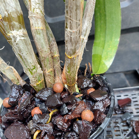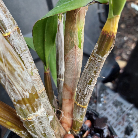 This is a premium plant you dont see this sort of quality often, A nice division grown on well, established in this pot for aprox 2yrs lots of new roots, 5 canes with new growth in excellent condition good clean plant Dendrobium Brimbank Sunshine,