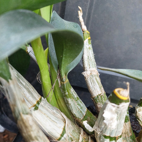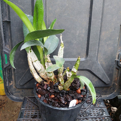 A very nice division of a Den. Cosmic Gold. Different to the last one I offered that was snapped up quickly. This was done about 18months ago from a monster plant, it has 5 active canes a few back bulbs and 2 new canes in a 200mm pot, please see pic, Just a really nice orchid great flower, flowers on mass every year. This little baby flowered last year, pic of flowers are this exact plant, as you can see I'm a huge fan of Cosmic Golds I just love the big golds, this baby gets a few red spots on the flower depending on the year, this is a big plant so freight will be a bit expensive but you dont get the chance to buy an established orchid as beautiful as this very often, theres a few bug spots on the leaves but its a really nice clean plant