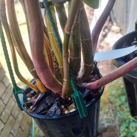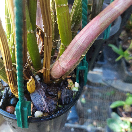A really nice division in flower now Den. Bergen 'St Albans' x Den. Australian Rose Beauty ' Pink Delight', its in flower now pic is exact flower now, I cant guarantee itll get to you in flower but we pack our plants extremely well, this has 12 canes an lots of new growth these babys are vigorous growers and handle the cold extremely well